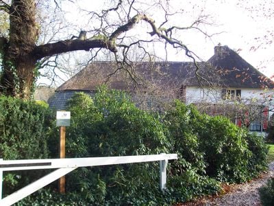 Goed bewaarde boerderij in gave landschappelijke omgeving. Strodak, vensters met luiken en negenruitsschuiframen in de voorgevel