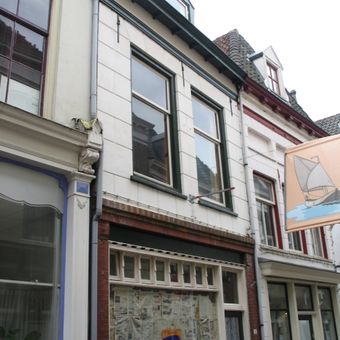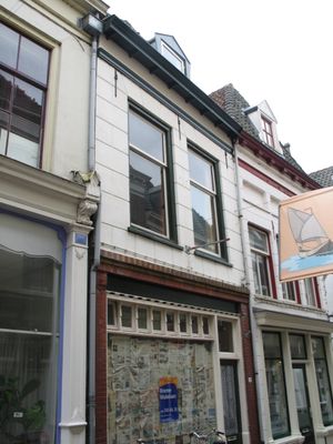 Pand met gepleisterde lijstgevel en jongere winkelpui