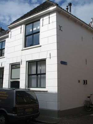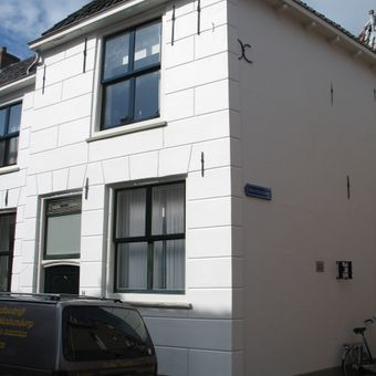 Pand met muurankers en gepleisterde rechte gevel met linkerdeel onder dwars schilddak, building in Kampen, Netherlands