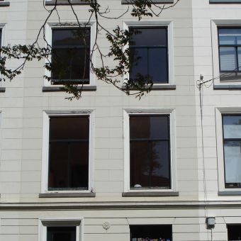 Pand met drie verdiepingen. Rijk geprofileerde houten kroonlijst waaronder fries met panelen