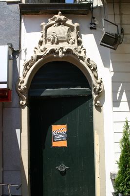Poortje met zandstenen boog en versiering in Lodewijk XV-stijl, in een cartouche een reliëf voorstellende een wijnvat met kinderfiguren, Rijksmonument op Markt bij 24