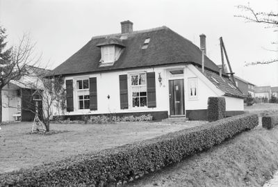 Huis van begane-grond met schilddak, waarin dakkapellen. Vensters met luiken en zesruitsschuiframen