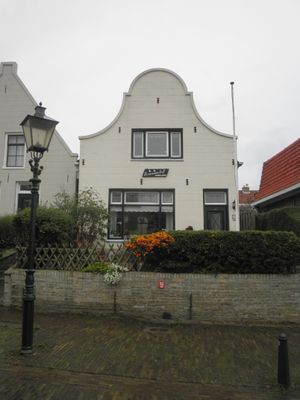 Pandje onder laag zadeldak tussen gepleisterde puntgevels