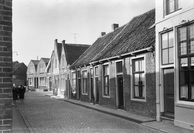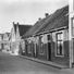 Eenvoudig huisje met geverfde langsgevel aan de straat