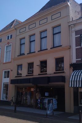 Laat middeleeuws pand met mooi, hoog schilddak en gepleisterde gevel onder rechte lijst, building in Zutphen, Netherlands