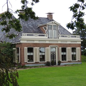 Dwarshuisboerderij in eclectische stijl, Rijksmonument op Optwizel 96