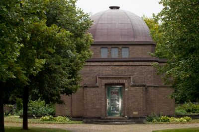 Aula op vierkante plattegrond onder een achtzijdig met koper gedekt koepeldakje, Rijksmonument op Noord Esmarkerrondweg 413