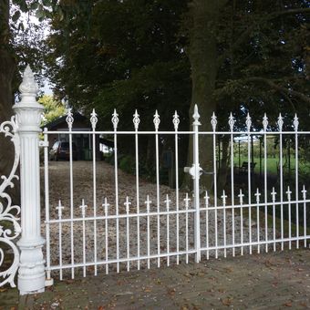 Mariënhof: toegangshek, rijk gedecoreerd, Rijksmonument op Midwouder Dorpsstraat bij 24
