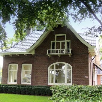 Rentenierswoning in Overgangsstijl met aangebouwde schuur, Rijksmonument op Haarsterweg 21