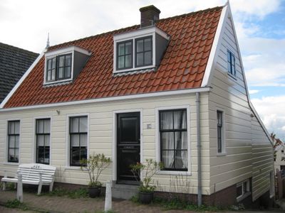 Houten huis. Puntvormig voorschot. Goede pui, en puilijst, goede roedenverdeling. Gepotdekselde zijwanden