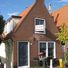 Houten huis. Puntvormig voorschot. Goede pui, en puilijst, goede roedenverdeling. Gepotdekselde zijwanden