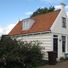 Houten huis, gepotdekselde zijwanden en puntvormig voorschot. Goede pui en puilijst