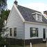 Houten huis, gepotdekselde zijwanden en puntvormig voorschot. Goede pui en puilijst