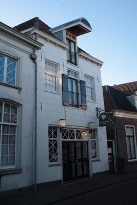 Woonhuis met bakstenen kroonlijstgevel. Vensters met 18e-eeuwse roedenverdeling