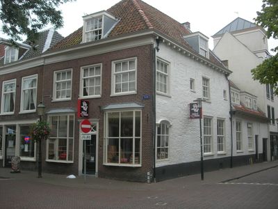 Huis met lijstgevel. Zijgevel gepleisterd en gewit, house in Amersfoort, Netherlands
