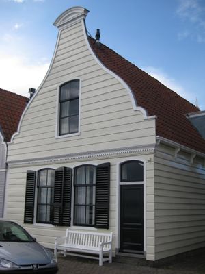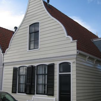 Houten huis (korbelen verdwenen). Puntvormig voorschot; goede pui