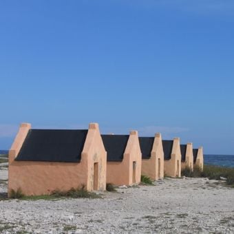 The cabins, constructed in 1850, provided shelter for enslaved workers who extracted salt from the surrounding pans until the Dutch abolition of slavery in 1863.