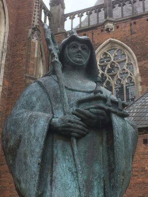 Sint Walburga, statue in Zutphen, Gelderland, by Jacques Germans, 1991