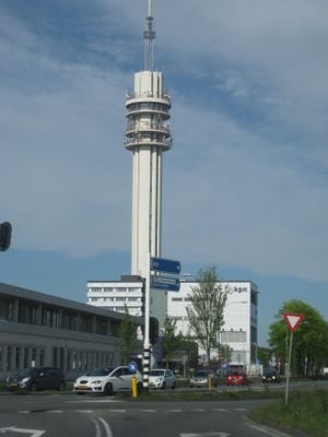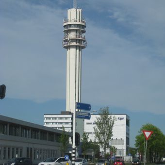 The KPN-toren reaches a height of 149.2 meters with its antenna system and stands as the tallest structure in the industrial district of Haarlem.