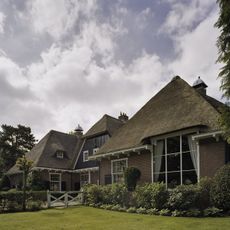 Gedeelte van drie landarbeiderswoningen, in elkaars verlengde onder een met riet gedekt zadeldak gelegen.