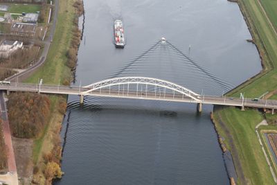 Fors pand met bakstenen gevel op smalle natuurstenen plint. Twee traveeën aan elke zijde van de risalerende middenpartij