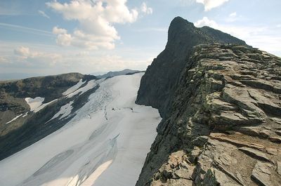 The first documented ascent of this Norwegian peak occurred on October 15, 1972, with climbers approaching from the Swedish territory.