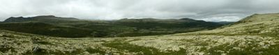 Dovre National Park is a protected area on a high plateau in the Innlandet region with peaks rising to around 1700 meters. The terrain consists of wide plateaus and rounded mountains that can be reached through several valleys and access routes.