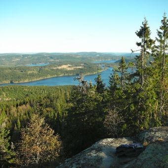 Nordmarka is a large forested region north of Oslo with rolling hills, multiple lakes, and varied terrain. The area spreads across several municipalities and offers both winter ski routes and summer walking paths throughout its landscape.