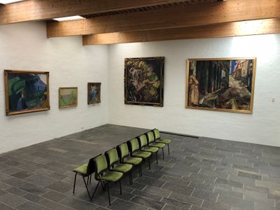 The museum houses over 100 paintings, including 86 works by Henrik Sørensen, 13 by Thorvald Erichsen, and six by Oluf Wold-Torne.
