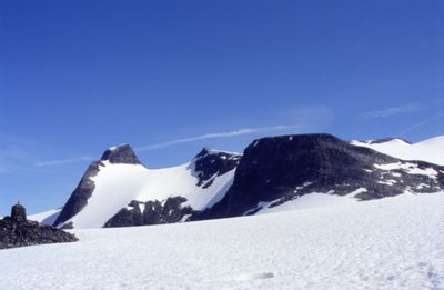 Climbers begin their journey at Bødalsæter, following a route across Bohrsbreen glacier before reaching the southwest ridge of the mountain.