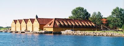 The naval complex includes fortifications, moats, a garrison church, commanding officer's lodge, guardroom, forges, smith's house, magazine, storehouses, and gunpowder storage facilities.