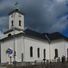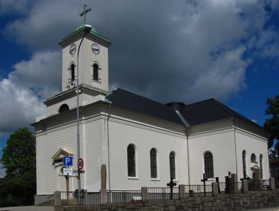 The brick church features classical proportions with five chandeliers from 1837 and a wooden pulpit designed by architect Christian Heinrich Grosch.