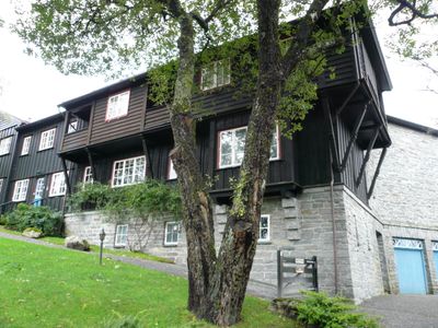 The property, completed in 1939, was designed by architect Ludolf Eide Parr in collaboration with Sæverud after receiving it as a wedding gift in 1934.