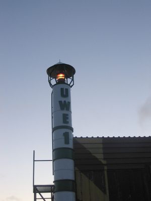 Named after Piotr Głowacki and also known as Uwe, this lighthouse operates in extreme Arctic conditions at coordinates 77°4'N latitude and 15°34'E longitude.