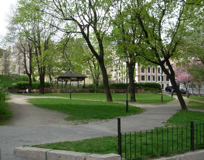 The park occupies the former grounds of Christ Cemetery, established in 1654, which closed for burials in 1924 and transformed into a park after 1964.