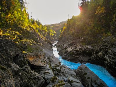 The marble formations create natural pools and channels where the river water flows, resulting in distinct geological structures found nowhere else in Norway.