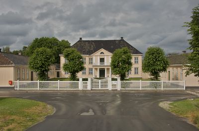 The Søndre Brekke mansion features restored Empire style architecture with fourteen farm buildings arranged across the expansive grounds of Brekke Park.