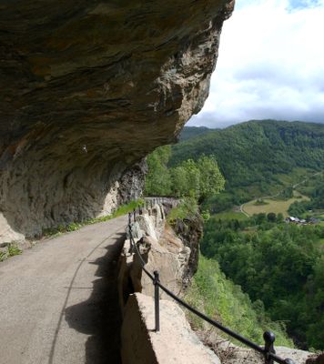 The original road construction in 1903 required workers to suspend themselves on ropes against the mountain slopes to create the path through the canyon.