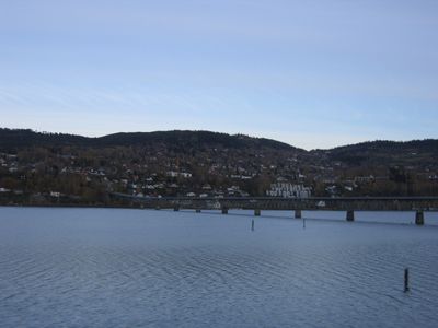 The Vingnes Bridge stretches 816 meters across Lake Mjøsa, connecting the Vingnes neighborhood with the central area of Lillehammer Municipality.