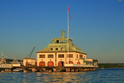 The Kongen clubhouse, part of Christiania Roklub, stands by the Oslofjord with facilities for boat storage, changing rooms, and meeting areas.