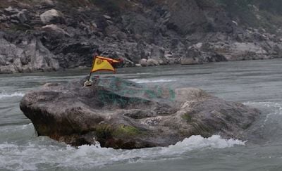 Khuwalung is a sacred rock formation at the point where the Dudhkoshi, Arun, and Tamor rivers meet, creating a large natural stone mass in eastern Nepal. The site sits at the borders between several districts and is defined by the rivers flowing around it.