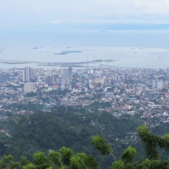 Cebu City is a provincial capital in the Central Visayas on the island of Cebu, occupying much of the eastern coastline and stretching between sea and forested hills. Streets run from the old port area through densely built neighborhoods up to hillside residential zones, where smaller roads wind between houses and shops.