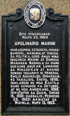 Apolinario Mabini historical marker, PHC historical marker for Apolinario Mabini in Tanauan