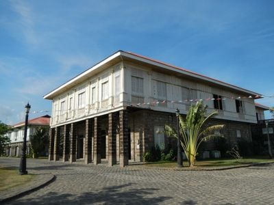 The building stands among other historic structures in Las Casas Filipinas de Acuzar, offering visitors insights into Philippine architectural heritage.
