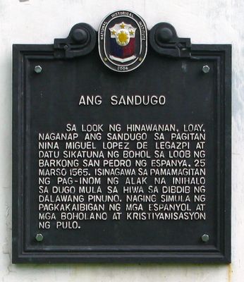 The marker commemorates the 1565 peace treaty between Spanish explorer Miguel López de Legazpi and local chief Datu Sikatuna through a traditional blood ritual.