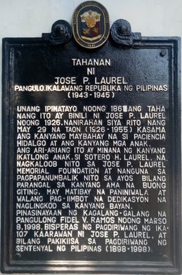 Residence of Jose P. Laurel historical marker, NHI historical marker for Villa Peñafrancia