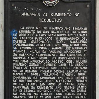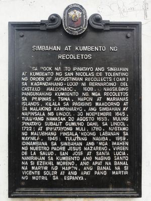 Church and Convent of the Recollects historical marker, NHI historical marker for the site of the former church and convent of the Augustinian Recollects