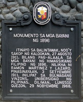 Monument to the Heroes of 1896 historical marker, NHCP historical marker for the Homage of the Filipino People to the Heroes of 96