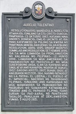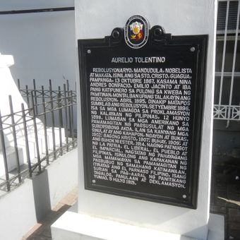 Aurelio Tolentino historical marker, NHCP historical marker for Aurelio Tolentino