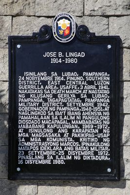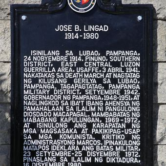 Jose B. Lingad historical marker, NHCP historical marker for Jose B. Lingad